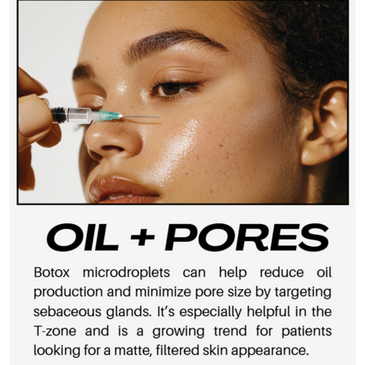 We combine microneedling with Botox infusions for tightening your skin. As microneedling opens your skin channels, mini doses of Botox are delivered to the skin for tightening and improvement of skin texture. This also helps with excessive facial sweating.