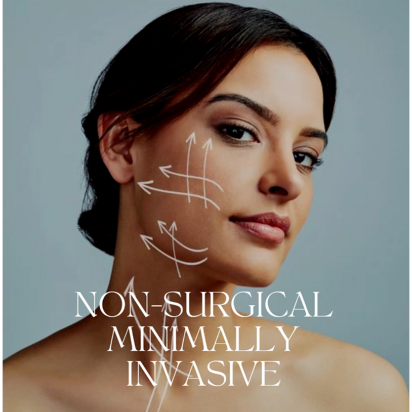 Depending on the pattern, depth, and number of threads used, PDO threads can rejuvenate the skin by increasing myofibroblasts (increasing elasticity) and increase the thickness of the papillary dermis (volumizing). Threads are also used for lifting sagging skin. Thread lift procedures require no incision and minimal recovery with maximum convenience. You will notice immediate results as they create a lifting effect by repositioning of tissue. PDO threads are fully absorbable within 3-6 months and create long lasting results giving you a “non- surgical face lift”.